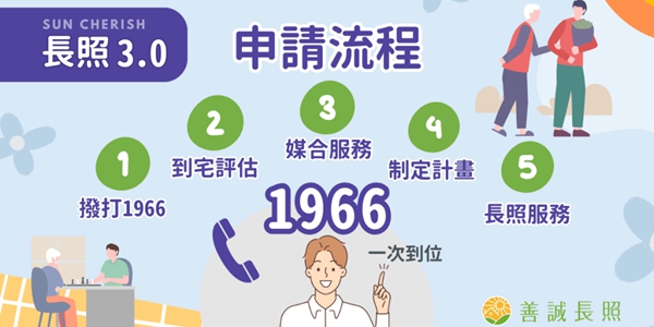 - 撥打1966長照專線,申請到府評估。